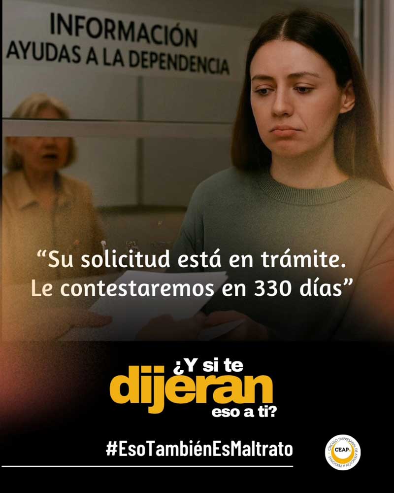 “¿Te imaginas que te gritaran por hacer una pregunta? ¿Que otra persona accediera a tu cuenta bancaria sin permiso? ¿Que te obligaran a esperar meses una ayuda para seguir viviendo en casa?”. En todos estos ejemplos que plantea CEAPs, la respuesta es directa: “#EsoTambiénEsMaltrato”.
